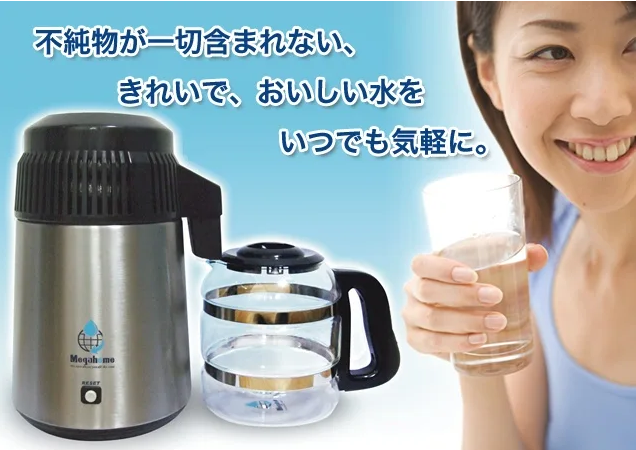 水道水に含まれる不純物を99.9%除去し、殺菌作用も備えた高性能な蒸留水器で、アメリカやヨーロッパをはじめ、世界中で愛用されています。震災以降、安心できる水への関心が高まり、メガキャットが提供する純水の利便性がさらに注目されています。