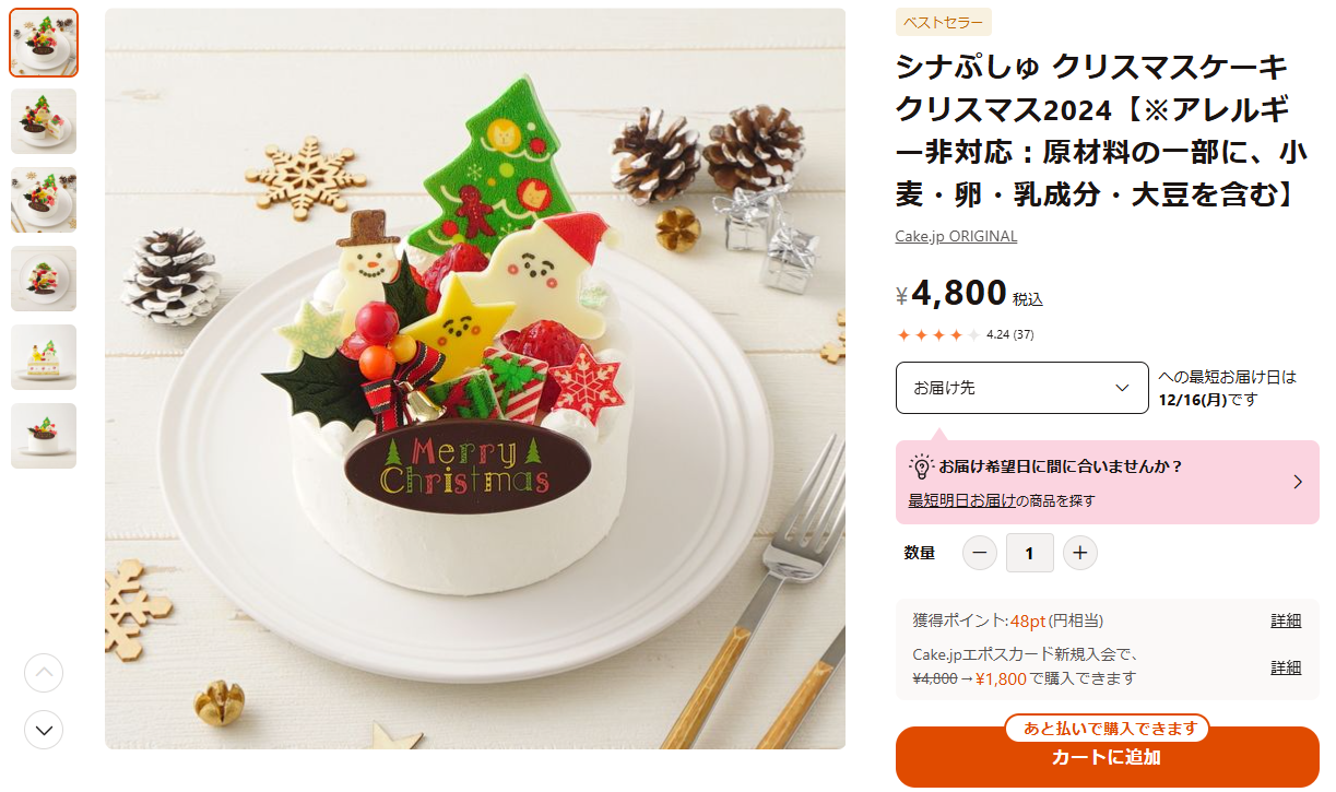 | 商品名 | Cake.jp「シナぷしゅ クリスマスケーキ 2024」 |