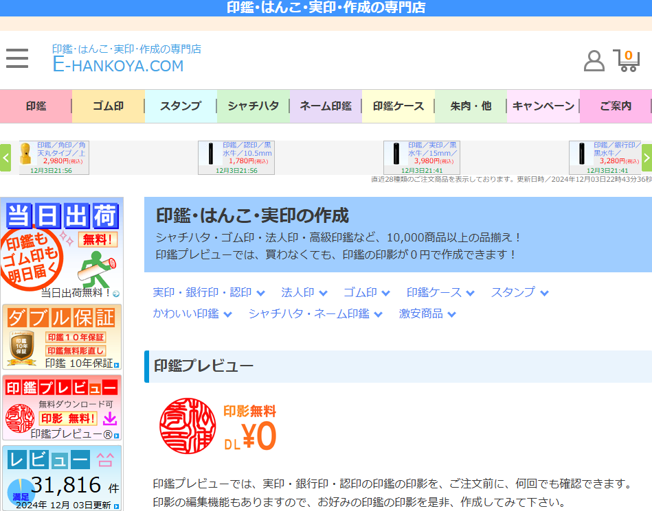 ご購入前に印影を確認できる「印鑑プレビュー」が人気。購入予定がなくても無料で印影を作成し、ダウンロード可能です。 -