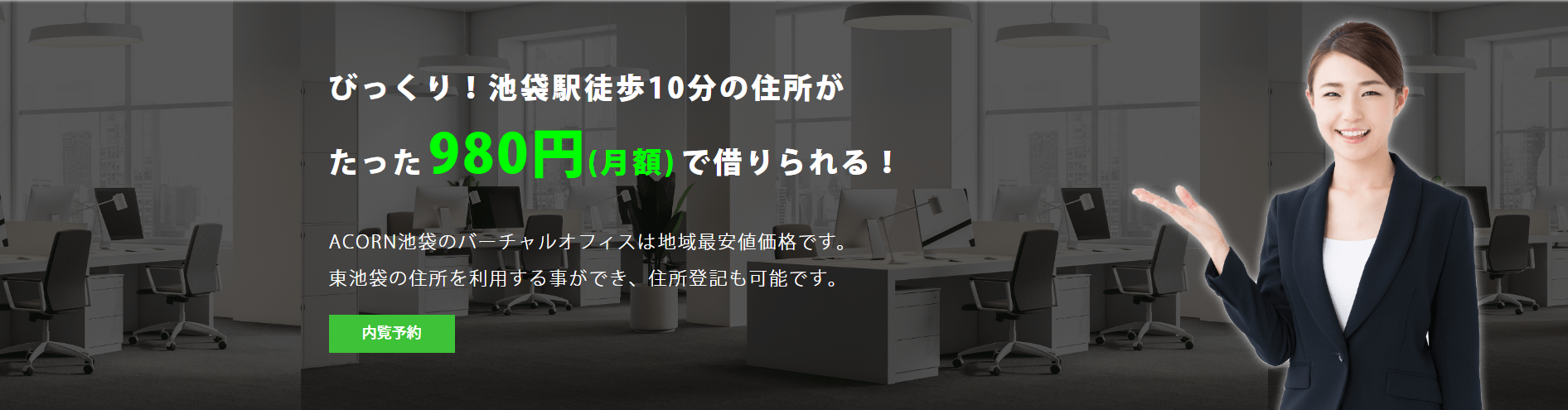 ACORN池袋のバーチャルオフィスは、月額わずか980円から利用可能で、地域最安値の価格設定が魅力です。池袋駅から徒歩8分の好立地で、東池袋の住所をビジネスで利用でき、住所登記もオプションで可能です。自宅住所を公開したくない方、地方在住で東京の住所を求める方、賃料負担を軽減したい方に最適なサービスです。